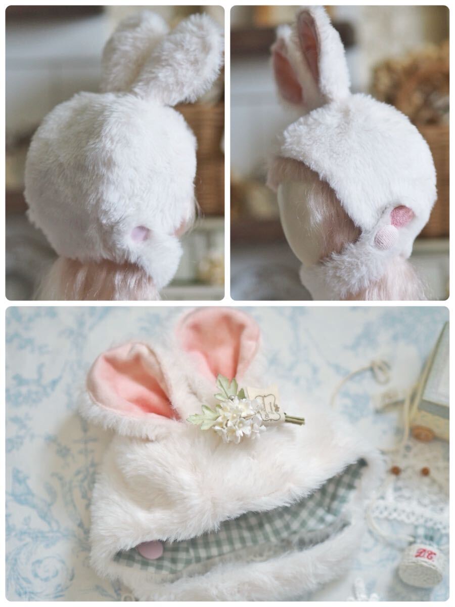 ふわふわな生地を使用したうさぎさんの帽子です。