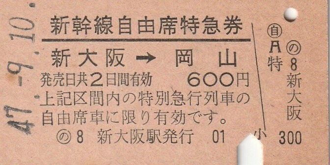 Product name: T102.新大阪⇒岡山 47.9.10【4286】裏面シミ有