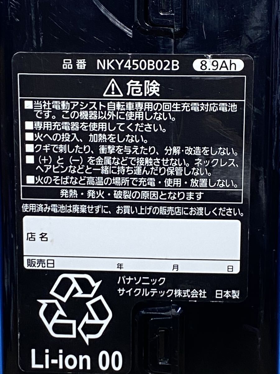 Product name: 547 NKY450B02B 長押し4点灯 8.9ah パナソニック 電動自転車バッテリー 中古  Panasonic 1000円スタート