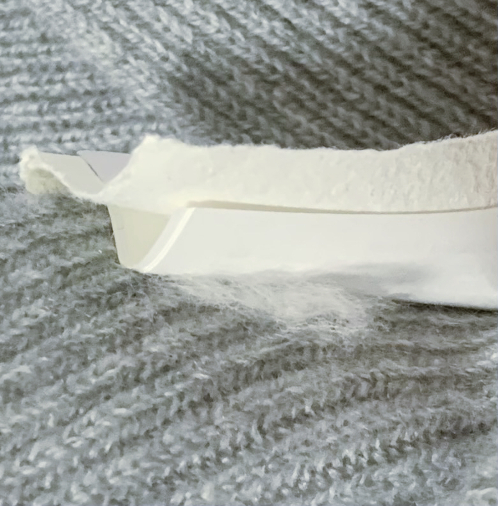 人工的に滑りを出してカシミヤを装った偽造カシミヤとは違い、本物の高級カシミヤは繊維が極めて細いアンダーコート部分のウブ毛を使用しているため、滑り感などが全くない「さらさら」な肌触りの非常に軽い巻心地が特長です。