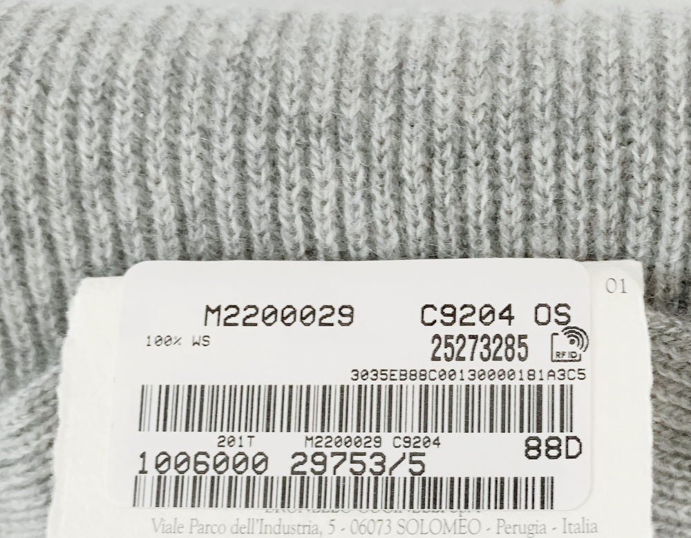 メーカー(Brunello Cucinelli S.p.A.)による偽物コピー品対策としての「RF ID」によって、ブルネロクチネリの本物製品であることが保証されています。