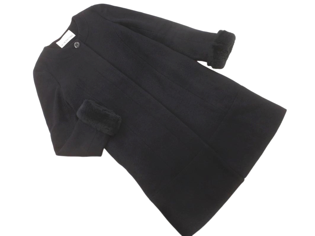 Product name: NATURAL BEAUTY BASIC ナチュラルビューティーベーシック ウール混 ノーカラー コート sizeS/紺 ◇■ ☆ fhb2 レディース