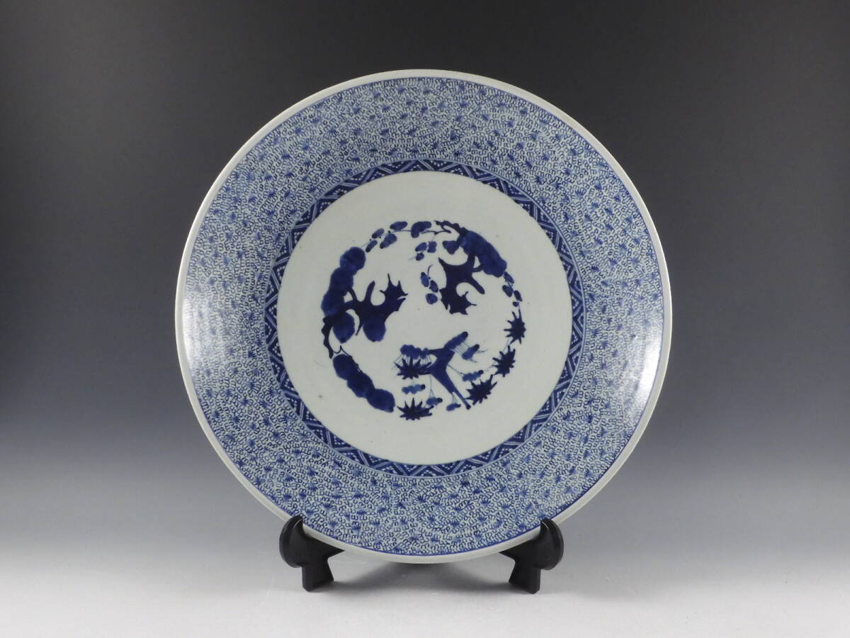 Product name: ○栄○古伊万里 染付 微塵唐草文 大飾皿 47cm 無傷完品 江戸期 53kw1