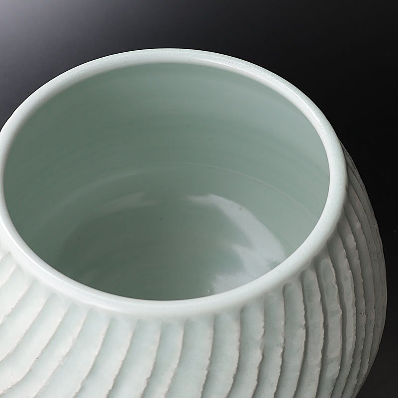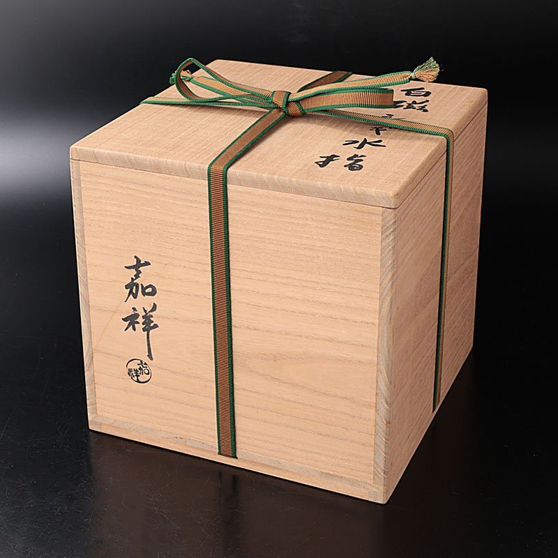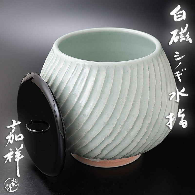 シンプルで洗練されたデザインと、艶やかで青みがかった白磁の肌が美しい水指です。