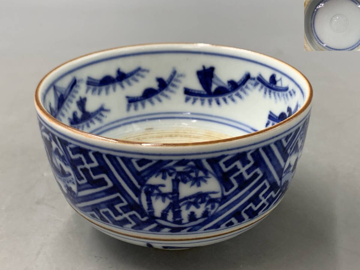Product name: 8#T/B029 九谷焼 須田菁華 茶碗 染付 茶道具 煎茶道具 60サイズ