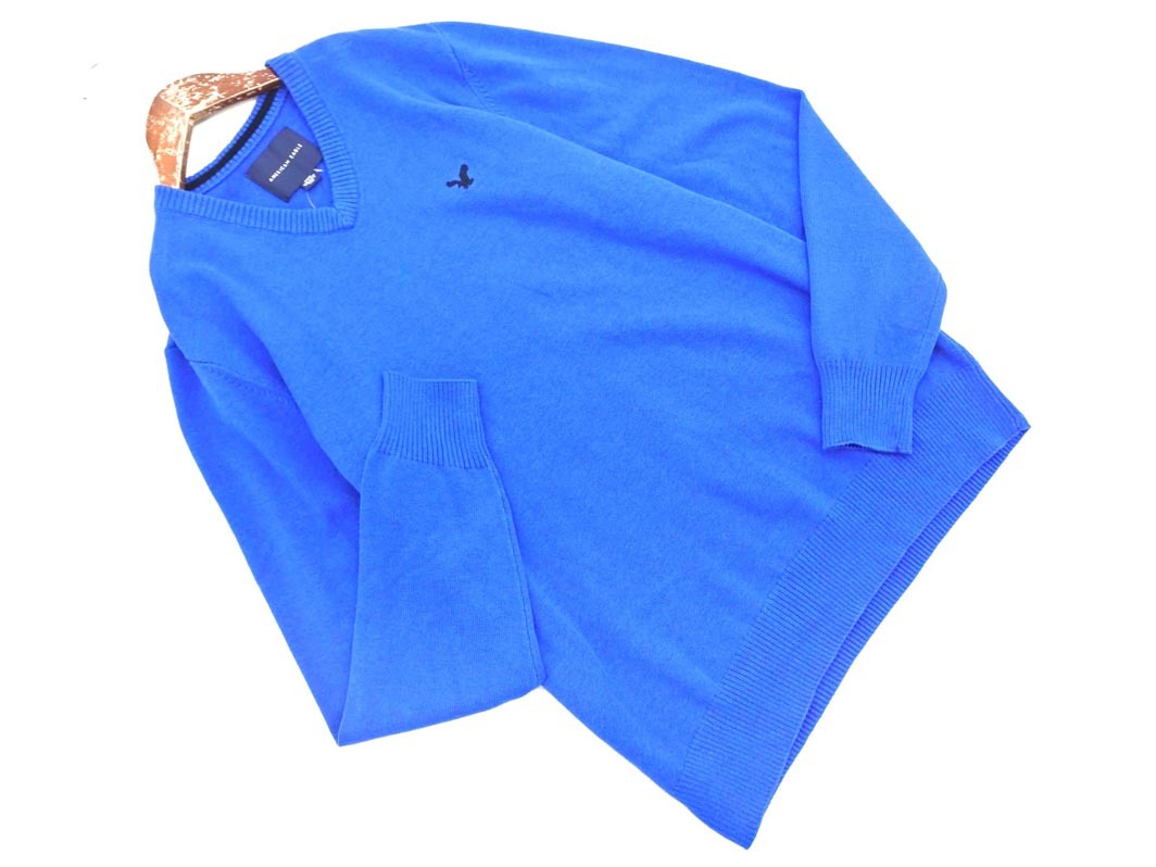 新品 AMERICAN EAGLE アメリカンイーグル Vネック ロゴ 刺繍 ニット セーター sizeM/青 ◇■ ☆ fhc5 レディース