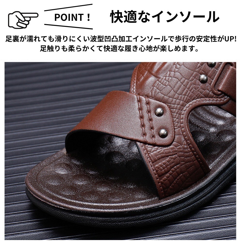 サンダル メンズ 2WAY スリッパ バックストラップ 合革 おしゃれ ブラック 26.5