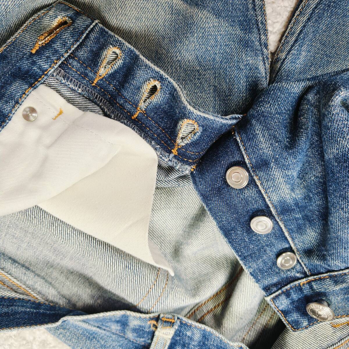 ●仕様:ボタンフライ / セルビッジ / 色落ち・ヒゲ / ダメージ加工あり