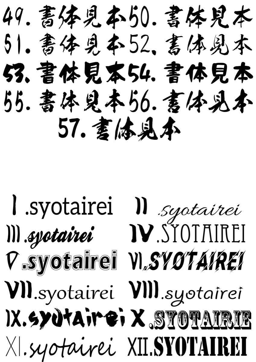 書体の画像を確認して頂き番号でお選びください。