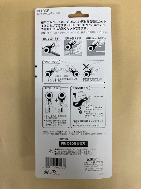 Product name: 未使用 #746■ オルファ 136B ロータリーカッター LL型 替刃式