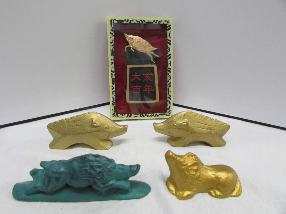 【070909A】亥年にちなんだ文鎮4点と中国墨1点!