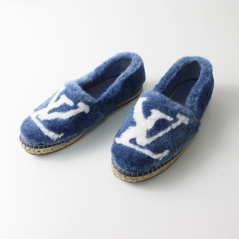 良品 ルイヴィトン LOUIS VUITTON シーショア ライン フェイクファー エスパドリーユスリッポン シューズ 36.5(23.5cm)//【2400014581614】