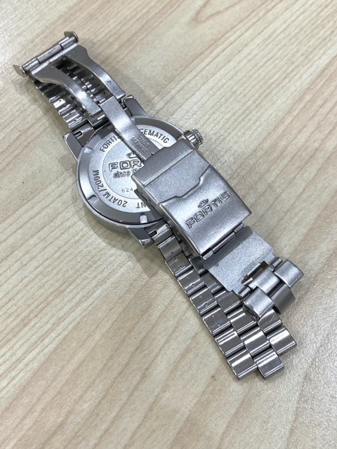 稼働品 FORTIS SPACEMATIC フォルティス 自動巻き 腕時計 3針 メンズ デイト 黒 銀 ブラック シルバー 624.22.148 ベルト外れ品