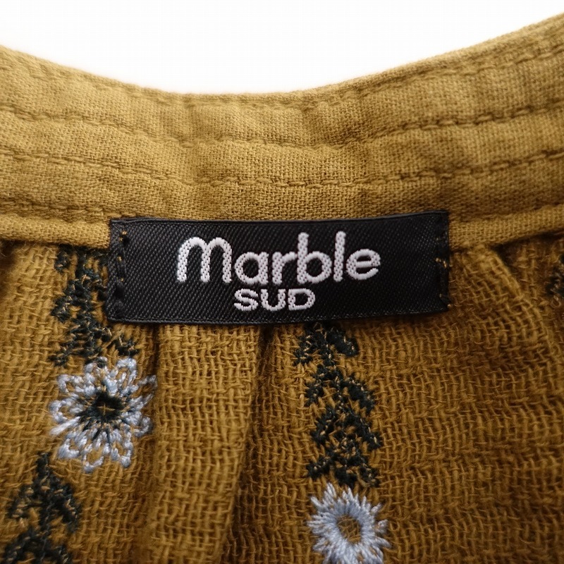 マーブルシュッド marble SUD *EMB anemone アネモネ バンドカラーブラウス*シャツキャメル長袖刺繍(33-2509-60)【82I52】