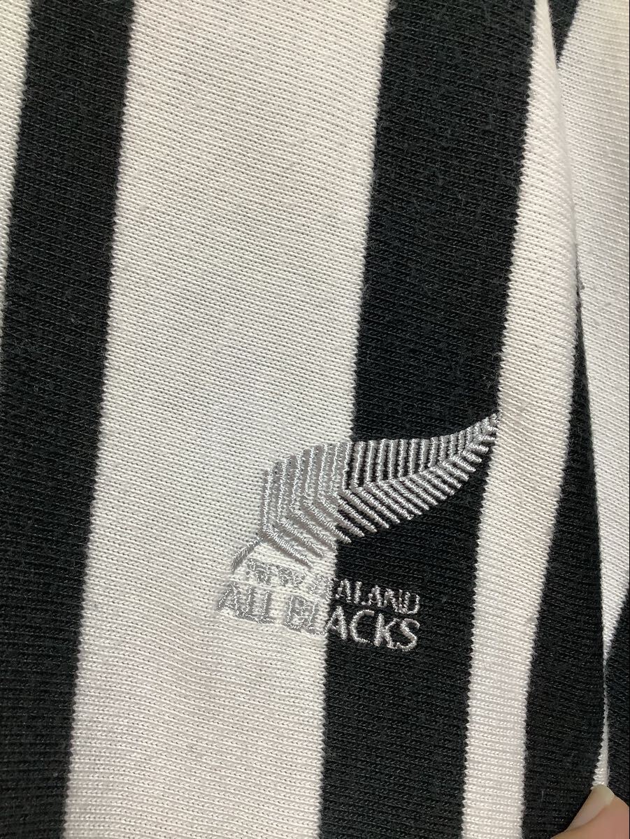 Product name: か1782 Canterbury ALL BLACKS カンタベリー オールブラックス ストライプ 長袖ラガーシャツ ラグビージャージ XL ロゴ刺繍 白/黒