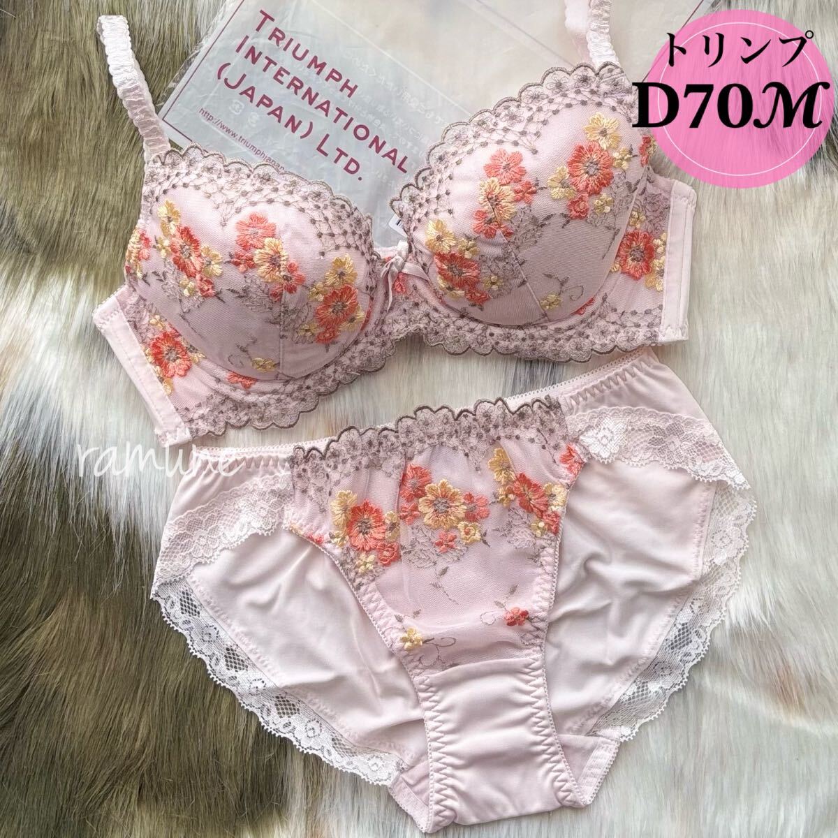 Product name: ラスト【トリンプ D70-M ムースピンク】新品 Triumph ブラジャーショーツ パッド付き 谷間メイク フラワーブーケ 刺繍 Dカップ 3/4カップ