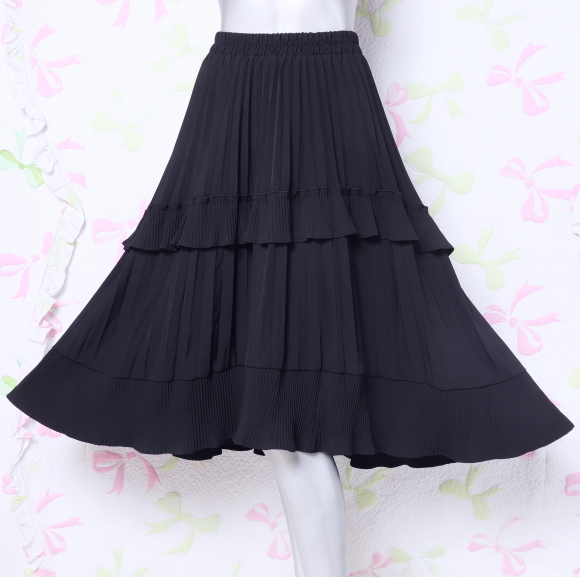 備考:手洗い可・2種類のプリーツ生地使用・ウエスト総ゴム・裏生地、ファスナーのないタイプです。