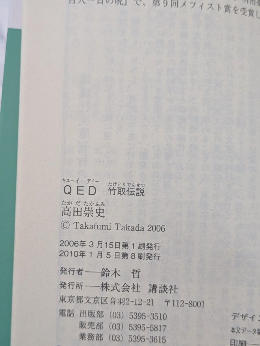 Product name: QED シリーズ4〜7の4冊セット 高田崇史 講談社文庫 東照宮の怨 竜馬暗殺 式の密室 竹取伝説 伝奇ミステリー小説