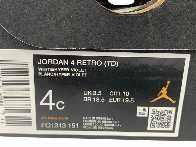 Product name: NIKE / ナイキ JORDAN 4 RETRO エアジョーダン ベビーシューズ ベビー サイズ : 10cm スニーカー ホワイト/パープル
