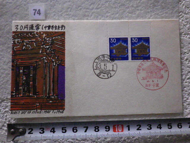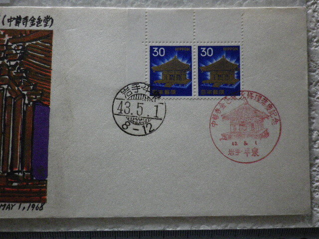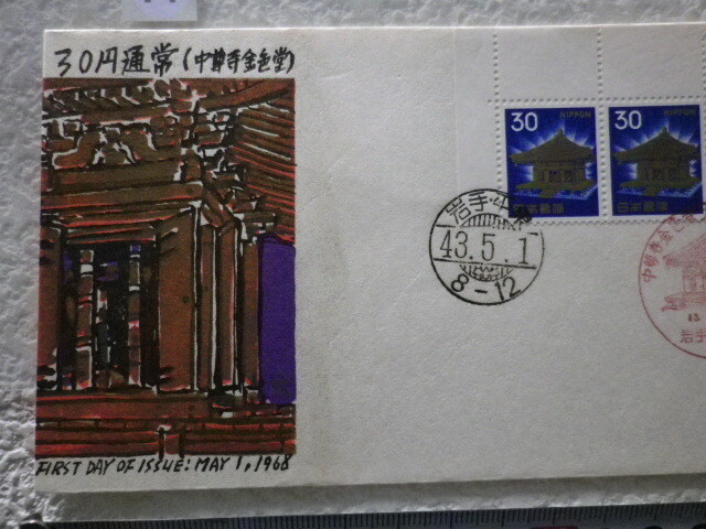 Product name: FDC 普通切手 30円中尊寺金色堂 1968年 2貼2消 解説書無●74●同梱大歓迎