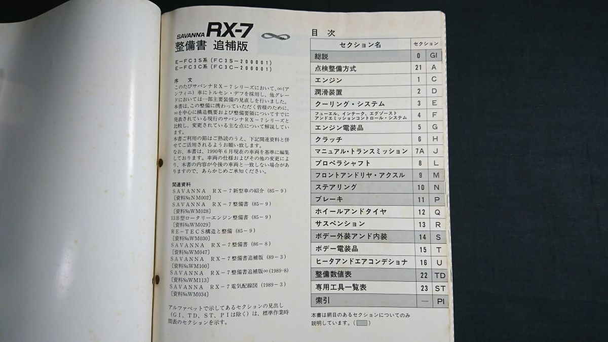 『MAZDA(マツダ) SAVANNA RX-7 E-FC3S系(FSC3S-200001)/E-FC3C系(FSC3C-200001) ∞(アンフィニ)限定車 整備書 追加版 1990年6月 WM133⑦』
