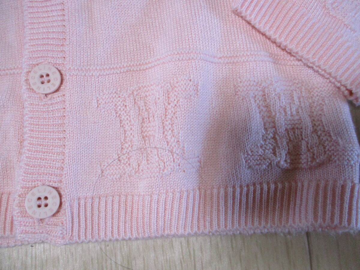 USED・美品・CELINE・清楚なニットカーディガン・ピンク色・サイズ90㎝・着丈25㎝・身幅脇下28㎝・綿50%・アクリル50%・汚れなどは有りませんが、USED品にご理解頂ける方の入札お願い致します。ゆうパケットミニ180円で発送させて頂きます。