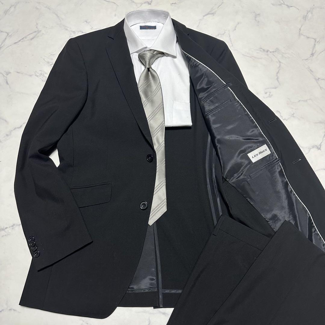 未使用級美品 レミュー LESMUES ブラックフォーマルスーツ 礼服 黒 冠婚葬祭 Y7 ストレッチ