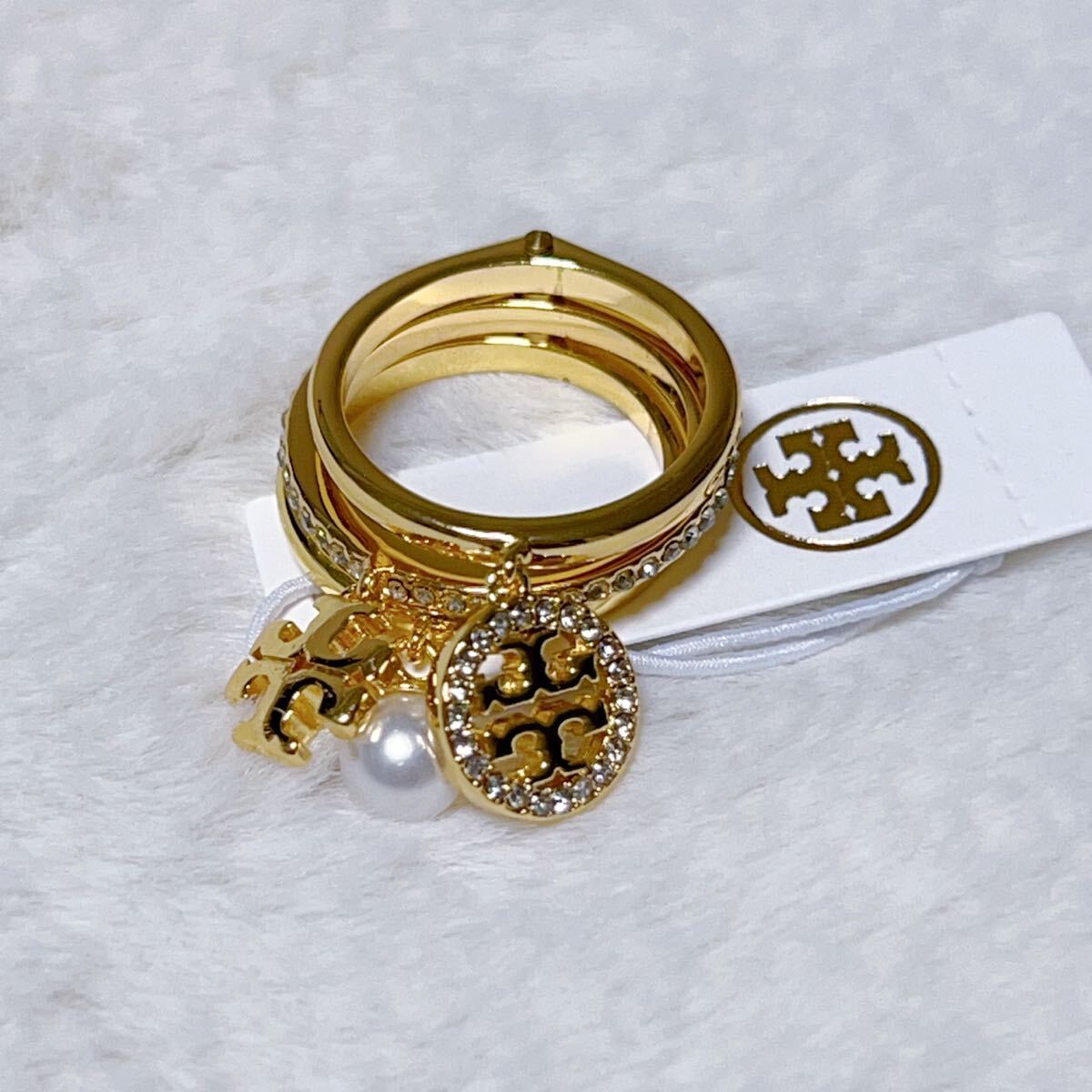 新品未使用 TORY BURCH トリーバーチ チャーム付き3連リング ゴールド US7 日本サイズ14号
