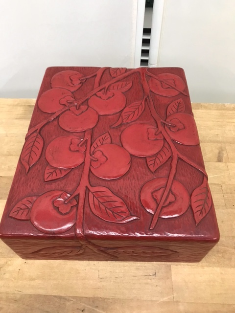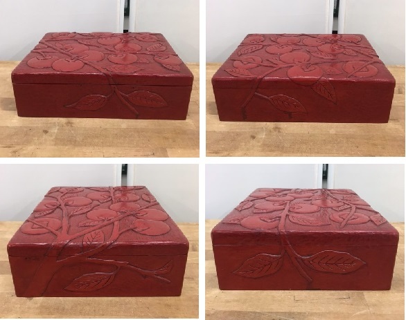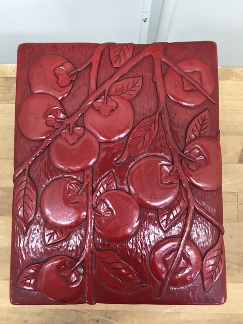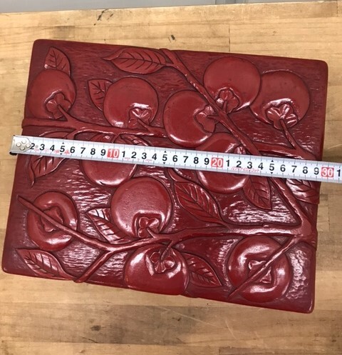 Product name: のK4734  鎌倉彫り 柿 木箱 文箱