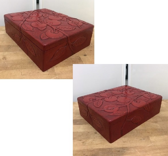 のK4734  鎌倉彫り 柿 木箱 文箱
