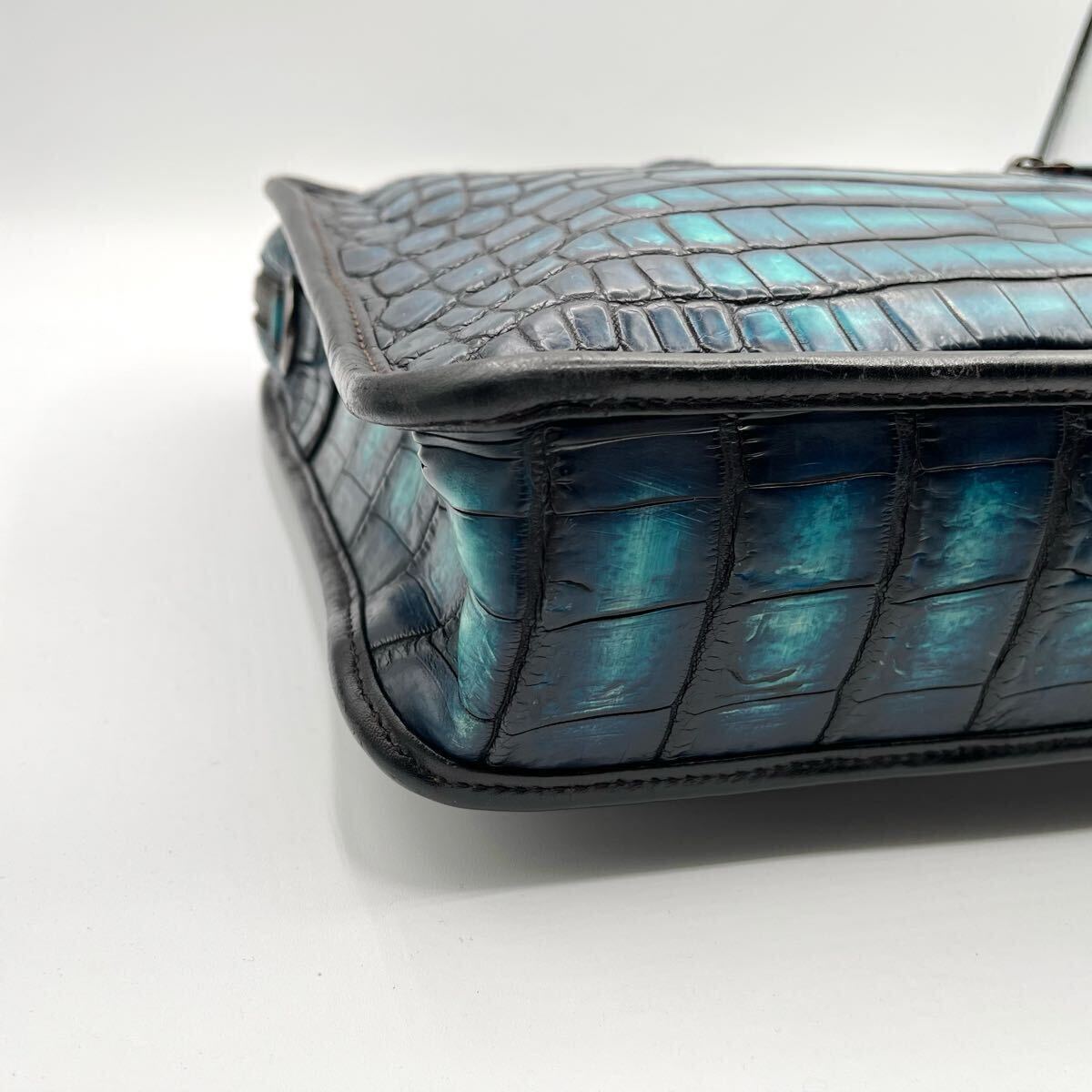 定価85万!!!クロコダイル ビジネスバッグ ターコイズブルー 目地染め 青 マットクロコ センター取り A4収納 ブリーフケース 鰐革 メンズ