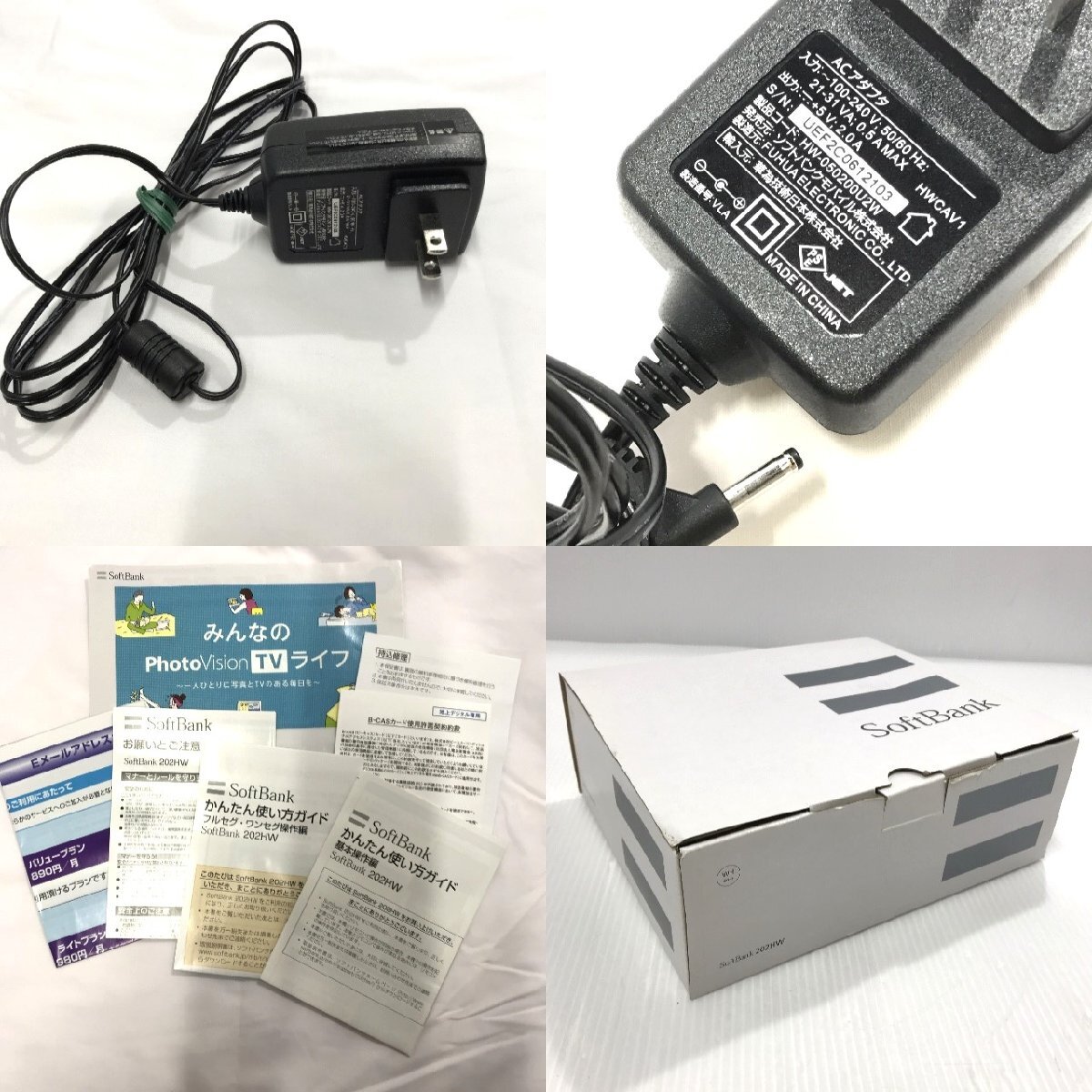 ジャンク SoftBank PhotoVision TV ポータブルテレビ 202HW 2012年製 通電確認 圏外表示あり ACアダプター リモコン 説明書あり【道楽札幌