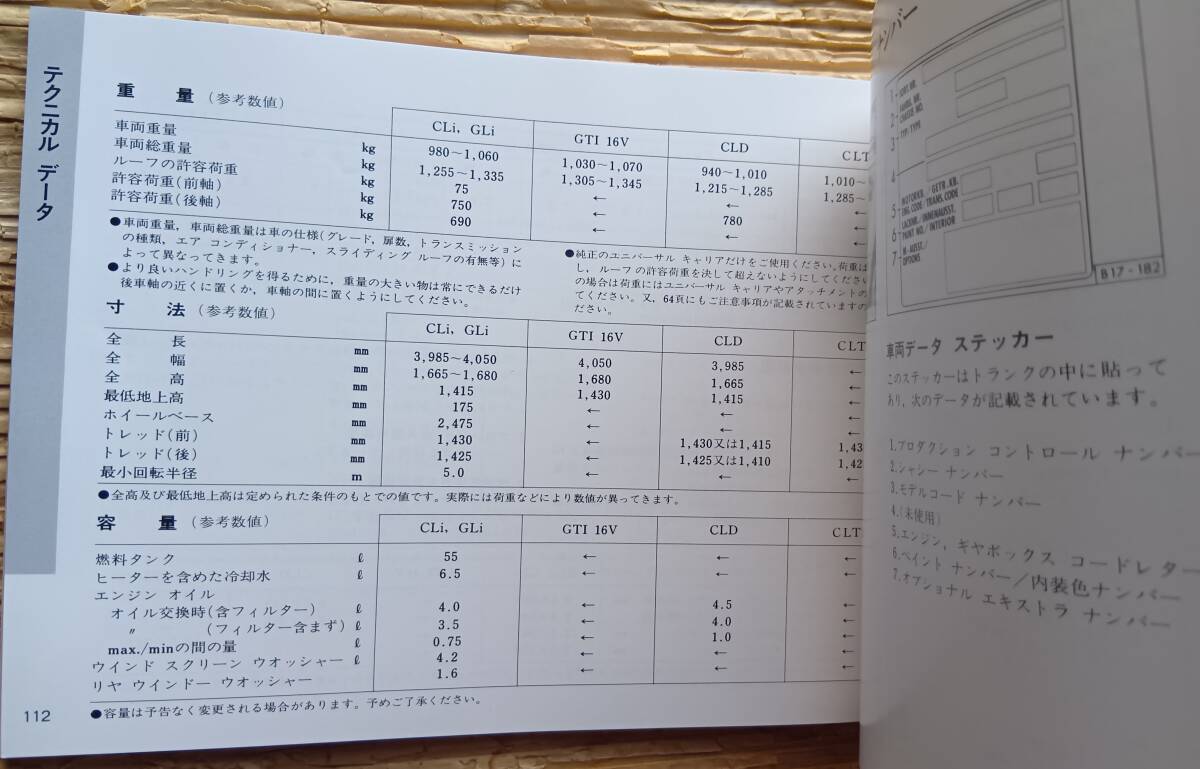 VW ゴルフⅡ 取扱説明書 フォルクスワーゲン 1991年モデル 2代目 19E型 取説 オーナーズマニュアル 取扱書 Golf Volkswagen