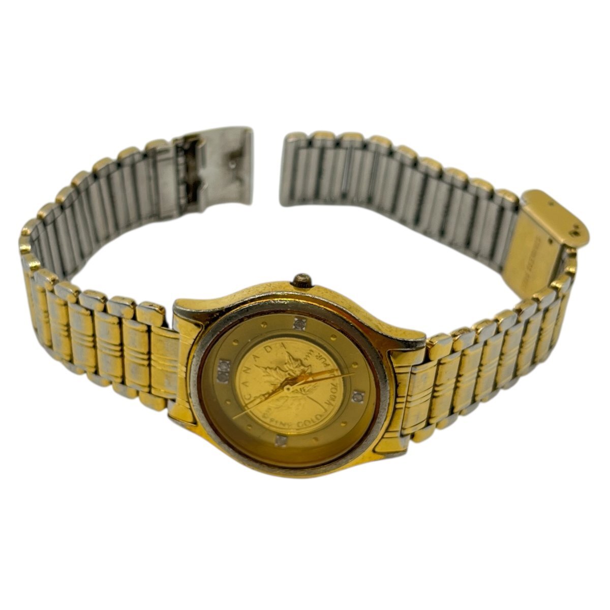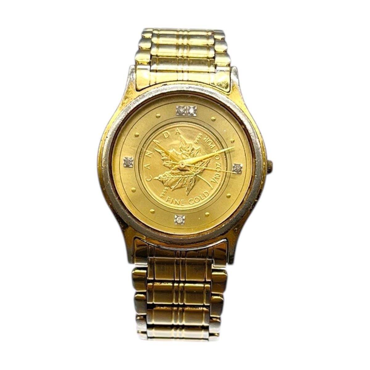 Product name: 蘇や(HY1128) 腕時計 ELGIN エルジン メイプルリーフ金貨 SK-147-C 1/10オンス クオーツ式 稼働 中古品 コンパクトサイズ