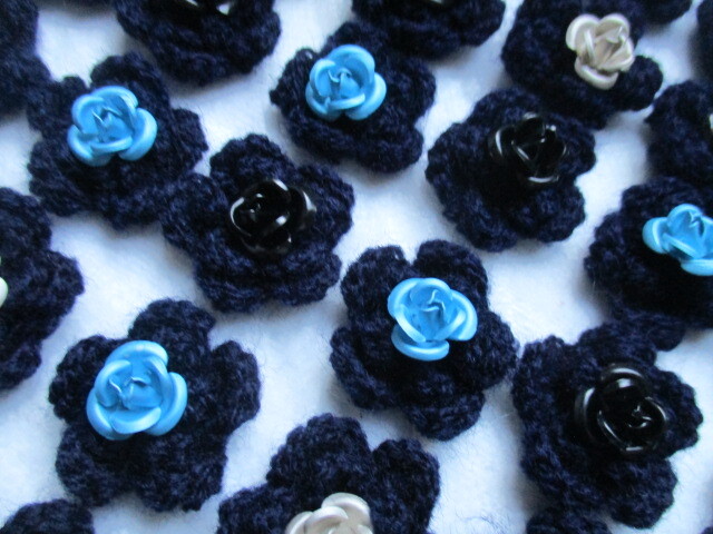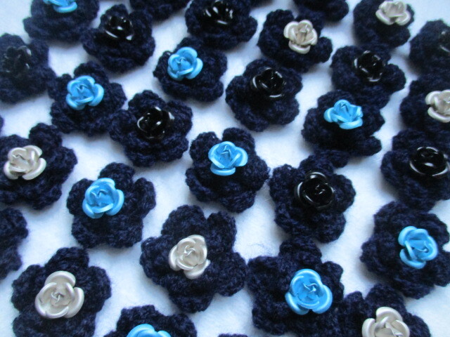 Product name: R02◆ ネイビーW編み花モチーフ 36個 ・ アルミ薔薇 3色-計 36個