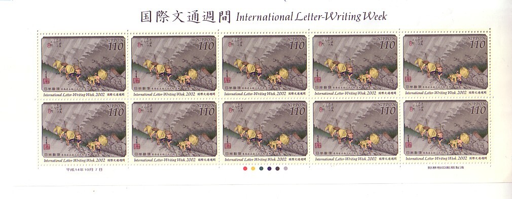 国際文通週間2002 東海道五拾三次之内・庄野」の記念切手です(110円切手X10枚)。送料は普通140円(普通便 複数同梱発送では180円)になります。