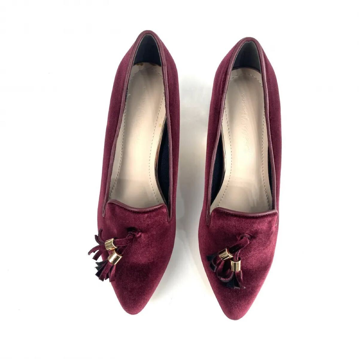 ラグジュアリービジューヒールオペラパンプス 25.5cm ワインレッド パンプス 靴