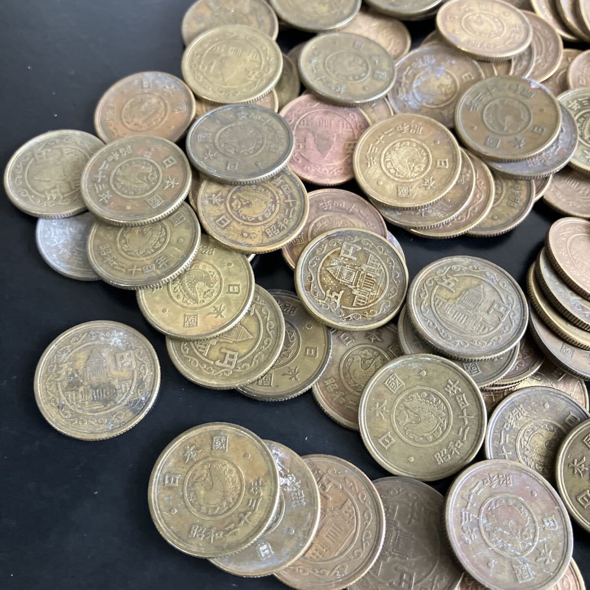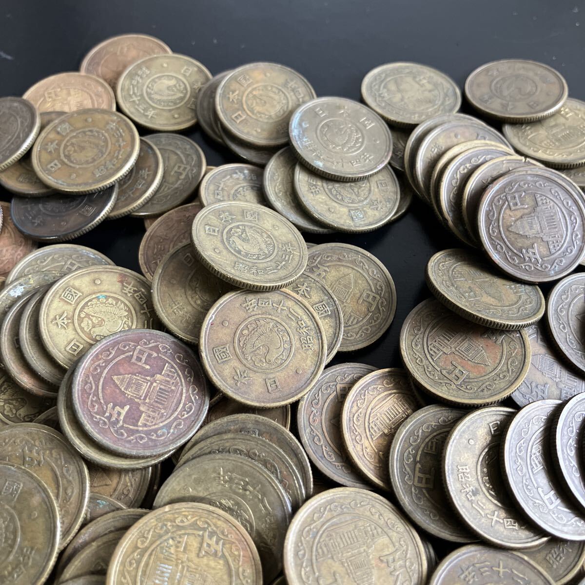 Product name: 現行貨幣 昭和23・24年 穴なし5円黄銅貨 国会議事堂 コレクション まとめて1085.2g ★18
