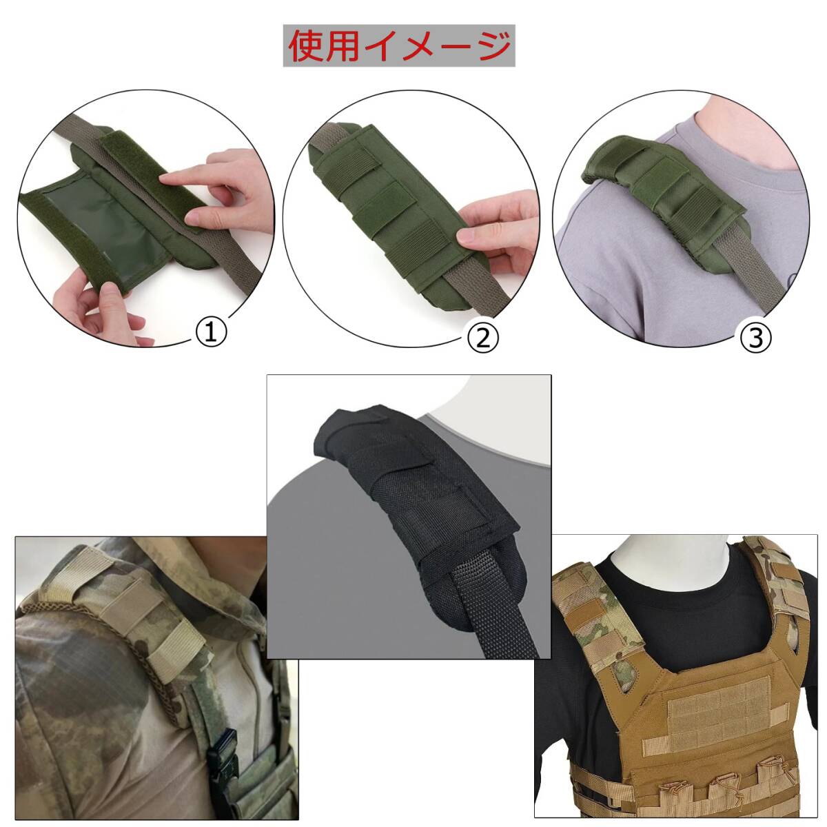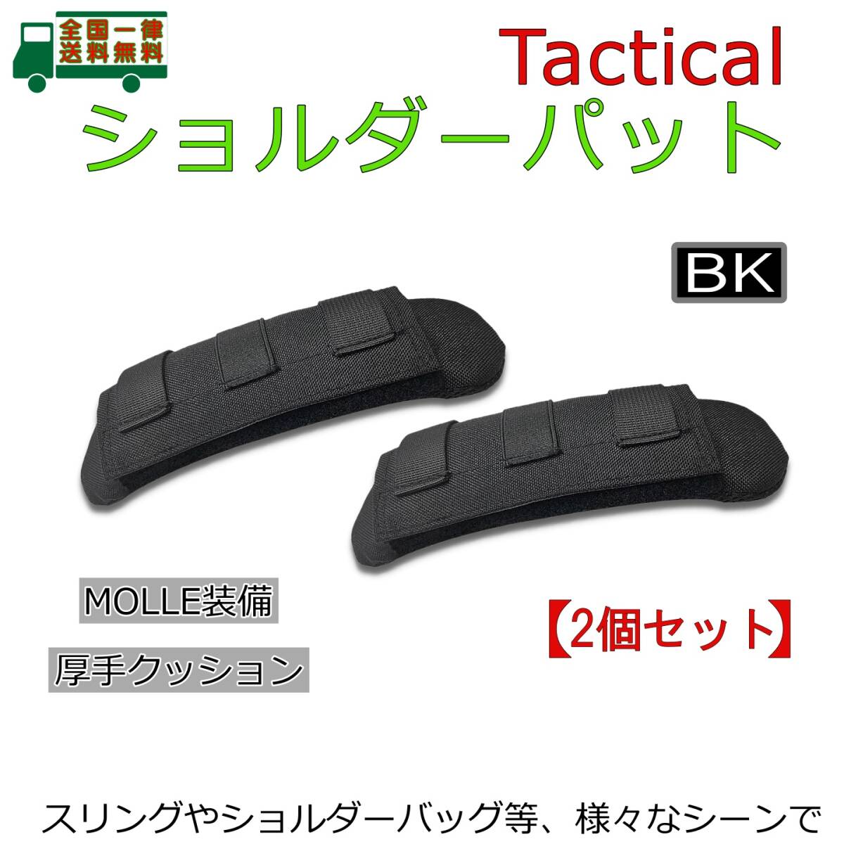 ショルダー パット 2点 BK/黒 MOLLE装備 厚手クッション スリング バッグ 肩パッドに ストラップ・ベルトに ナイロン メッシュ ミリタリー