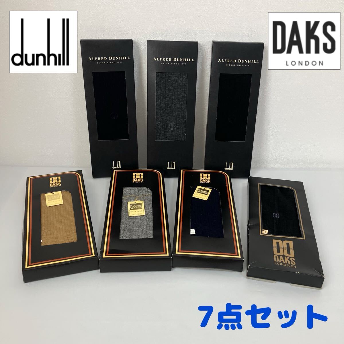 TA■ 未使用 dunhill ダンヒル DAKS ダックス 紳士 ソックス 7点セット 25cm 刺繍ロゴ メンズソックス 靴下 黒 グレー 紺 箱入り 日本製