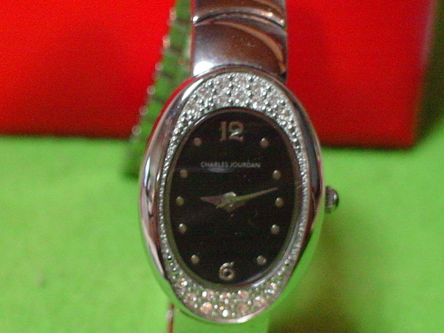 珍品 デザイン CHARLES JOURDAN 3ATM 女性用腕時計 ブラック 楕円型 ケース付 ジャンク品