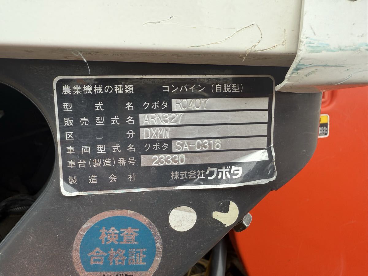Product name: 富山発 クボタ コンバイン ARN327 645h 実働 現状