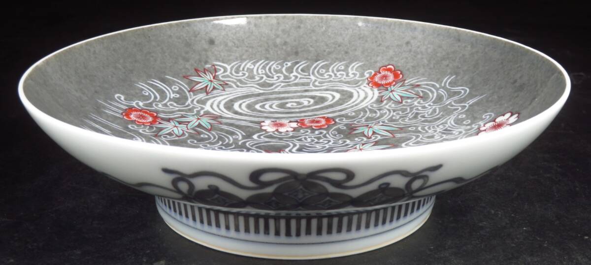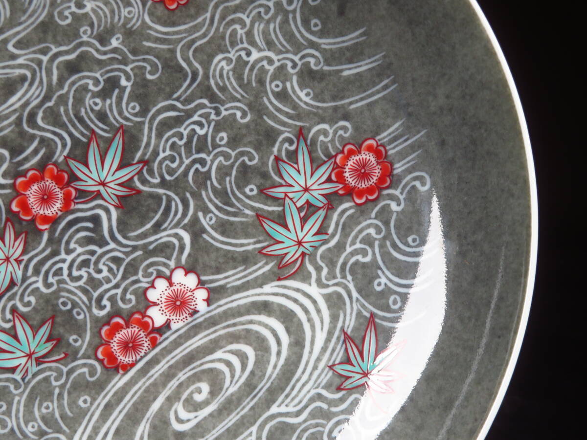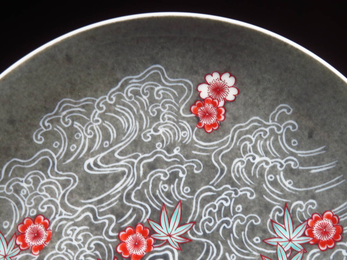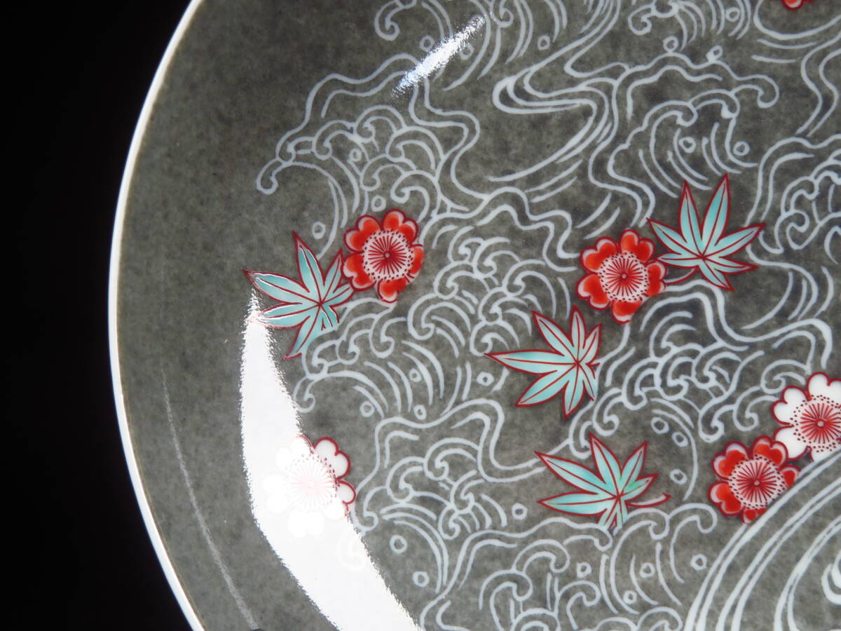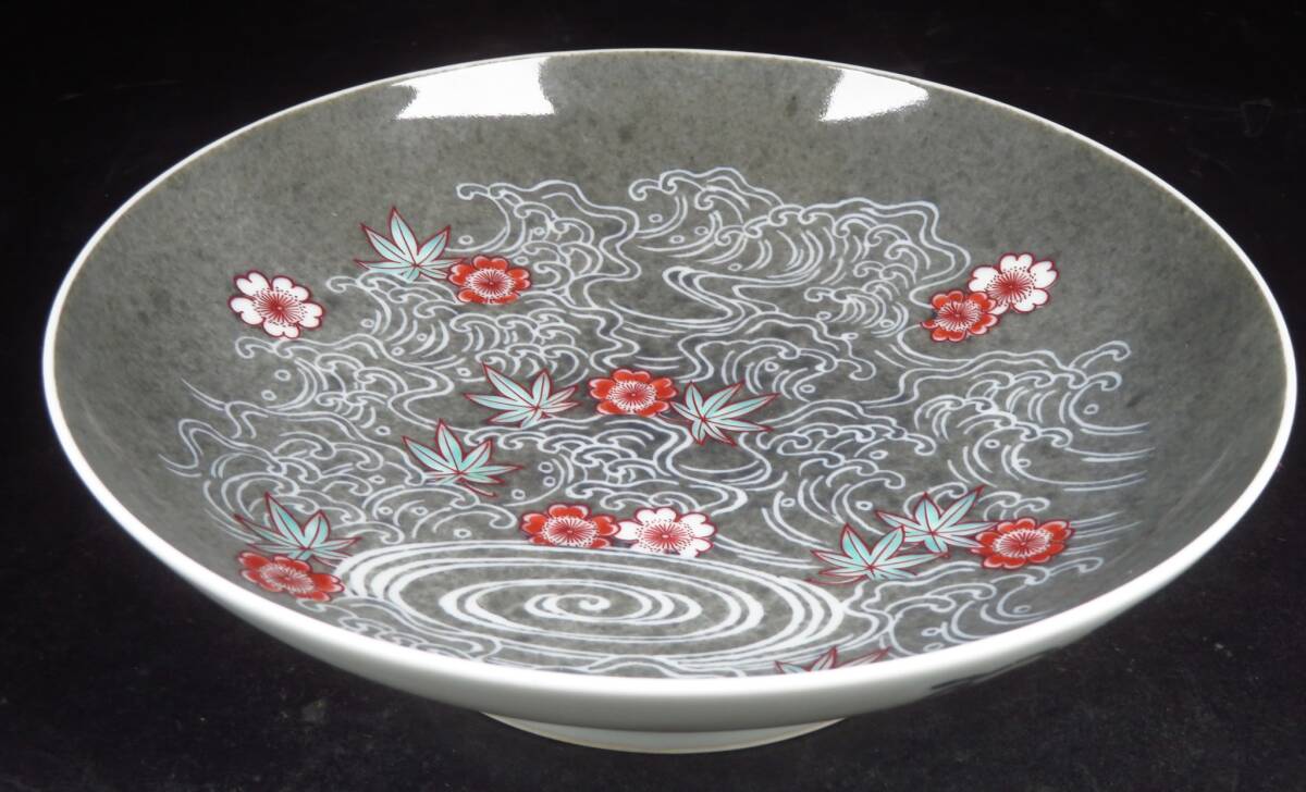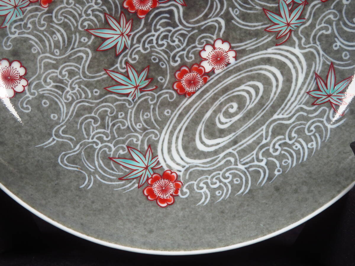 Product name: 【SAKURAYA】希少な本人作【色鍋島 薄墨竜田川文高台皿/人間国宝 十三代 今泉今右衛門】飾皿 作家 在銘 共箱 有田焼 骨董品 直径19.8cm