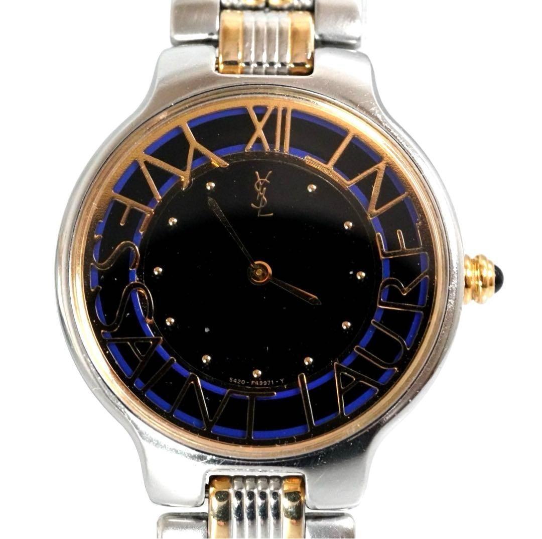 1円 スタート Yves Saint Laurent イヴサンローラン YSL ロゴ ラウンド レディース 腕時計 クォーツ 稼働品 vintage antique wacth 1スタ