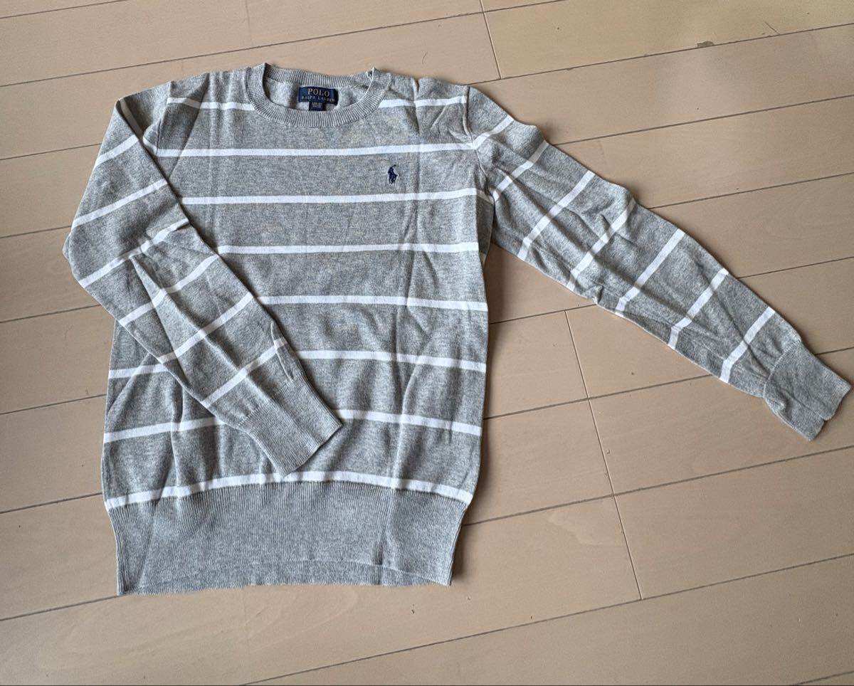 子供用ラルフローレン、グレーストライプ綿セーター、未使用品。