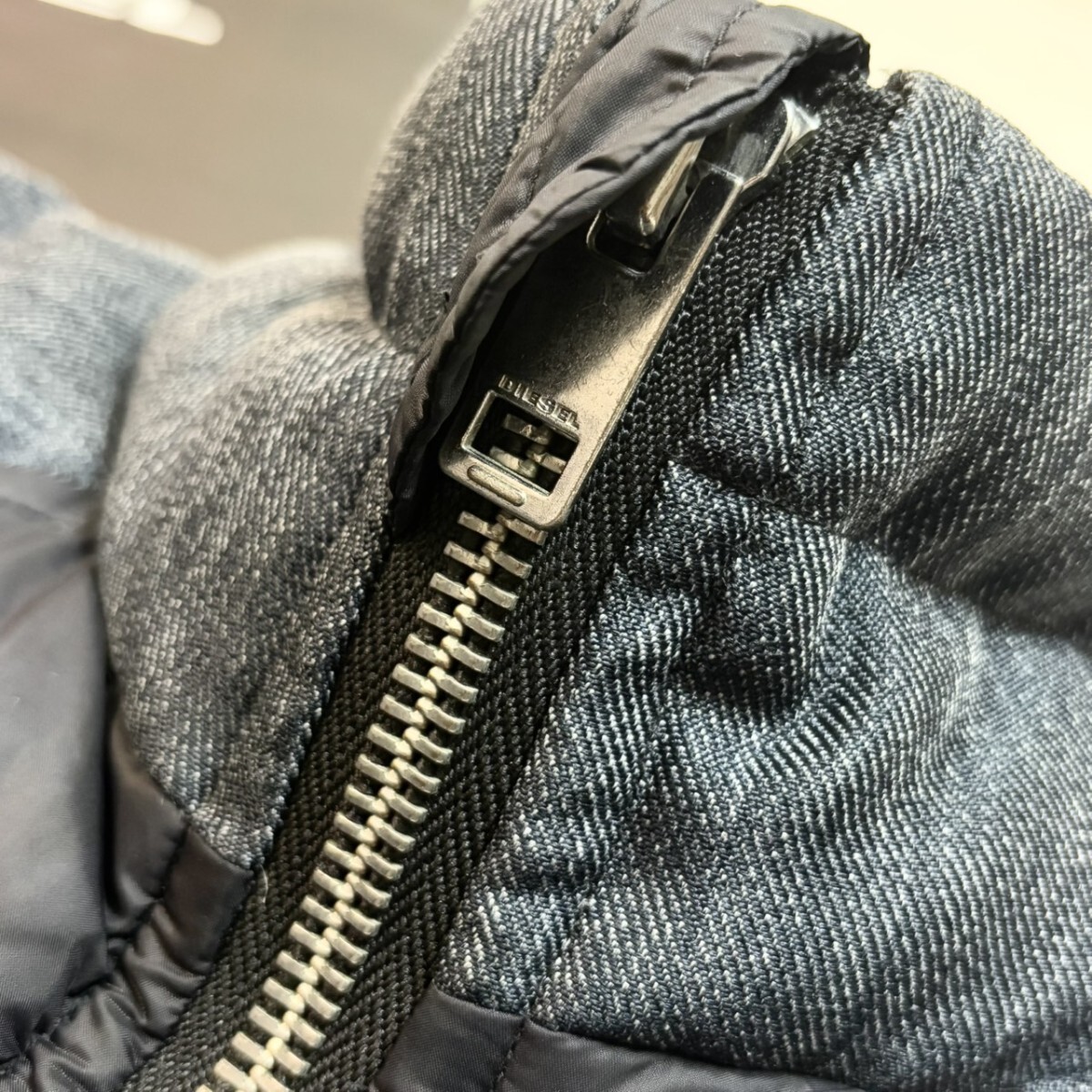 Product name: Sサイズ相当●DIESEL ディーゼル ダウンジャケット デニム切替風 ジップ刻印 袖ロゴパッチ ネイビー メンズ アウター