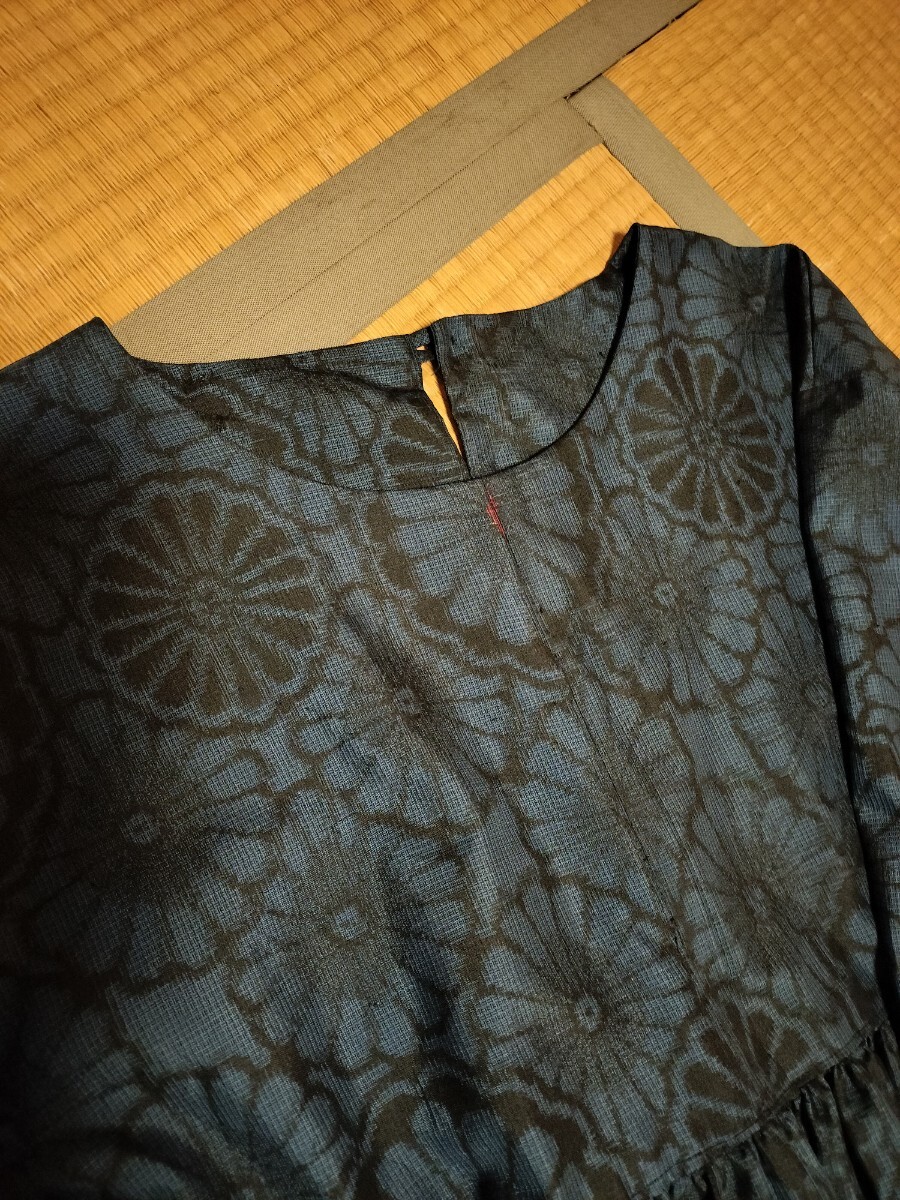 骨董市で購入致しました古い大島紬の着物からワンピースを作りました。