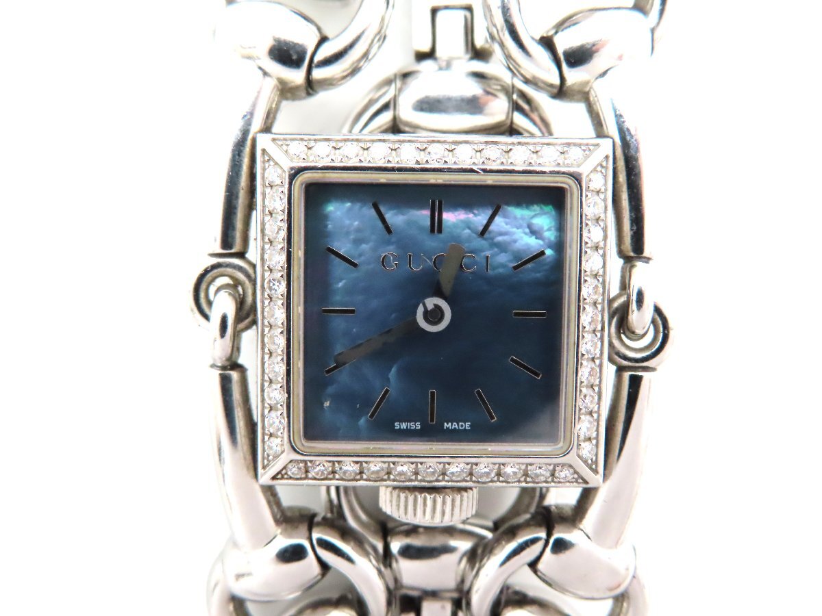 1円 グッチ 116.5 シニョーリア ベゼルダイヤ SS ブルーシェル文字盤 レディース 不動 QZ 27136 EERA