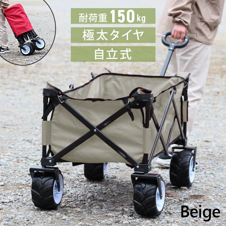 Product name: キャリーワゴン キャリーカート ベージュ 耐荷重150kg アウトドア ワゴン 折り畳み マルチ カート 頑丈 軽量 レジャー 道具入れ mermont