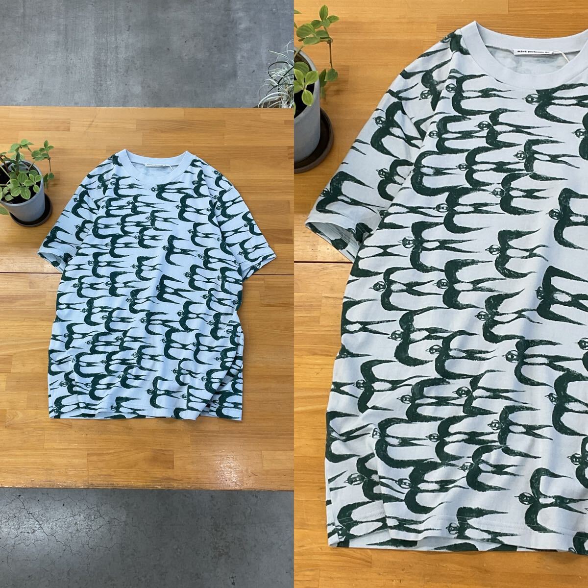 Product name: mina perhonen ミナペルホネン hello swallow コットンツバメ柄Tシャツ 綿100%半袖トップスカットソー グレー灰緑色系 Lサイズ q